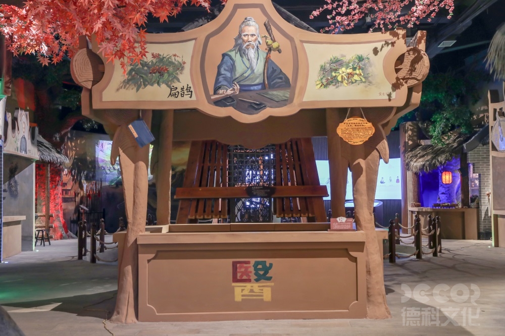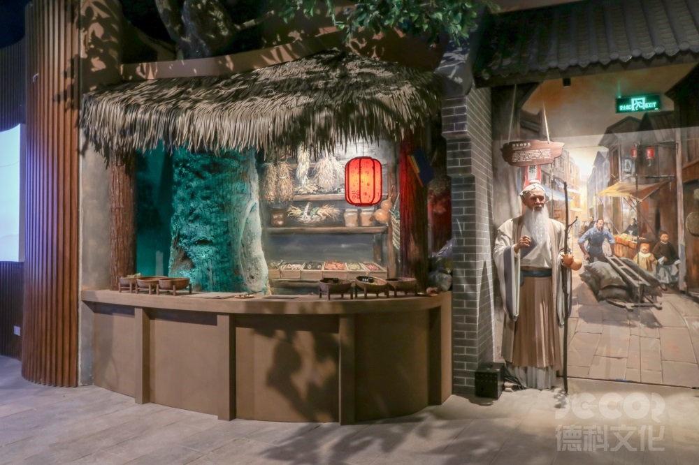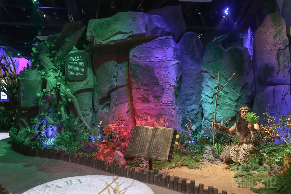 百草園外形像一朵五葉梅,綻放在嶺南大地綠野上,依山面水。德科設(shè)計人員根據(jù)中醫(yī)藥主題,設(shè)計了“神農(nóng)秘境”、“尚合堂”、“膳食館”、“五行養(yǎng)生堂”、“文創(chuàng)市集”、“DIY手作坊”、“六和堂”及“酷玩瓦舍”八個主題展廳。