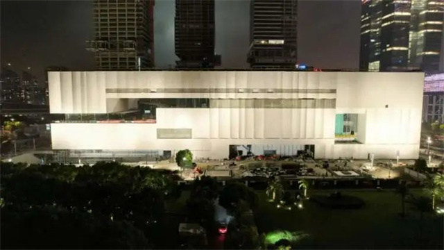 據(jù)建設(shè)方上海建工集團介紹,在建上海博物館東館近日開始亮燈調(diào)試。目前,建筑的外立面及總體景觀照明已基本完成,進入通水通電和調(diào)試階段。室內(nèi)裝修、室外總體等施工也正有序推進。上博東館預(yù)計今年年底完成竣工驗收目標(biāo)。